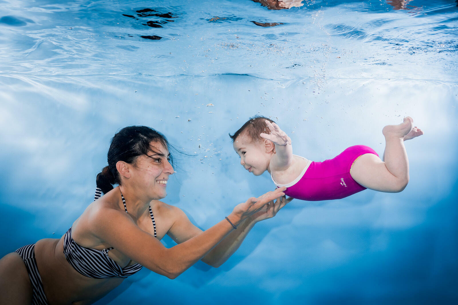 Mit über zehn Jahren Erfahrung im Bereich Unterwasser-Fotografie sind wir die Experten für Schwimm- und Tauchfotos von Babies und Kleinkindern.